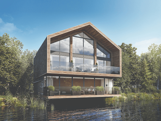Built on three storeys, with a fabulous master bedroom on the top floor, the Barnhouse is constructed from Grangehill cream and grey Cotswolds stone, and sustainably sourced timbers set, seemingly floating above the reed beds of the lakes, The Barnhouse is surrounded by stunning natural Cotswolds countryside. It combines strength, luxury and sustainability with splendid lakeside views from balconies on all three floors of the house.
