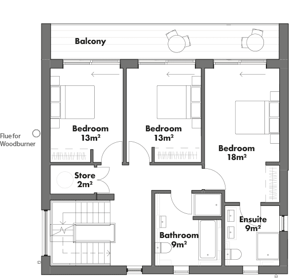 The ground floor living area and upstairs bedrooms all have access to balconies that overlook the lake. Constructed using attractive Grangehill cream and grey Cotswolds stone, and sustainably sourced timbers, it’s the perfect blend of luxury and sustainability, all set in stunning natural woodlands with splendid views of the lake.