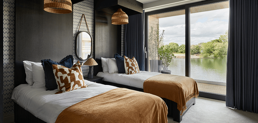 Constructed using attractive Grangehill cream and grey Cotswolds stone, and sustainably sourced timbers. All five spacious bedrooms of The Barnhouse Loft have their own balconies that also overlook the lake.